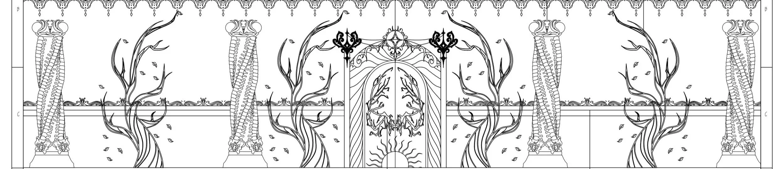This ballroom wall design was an exercise in Themed Environment aimed to tell a story only through an entryway.
