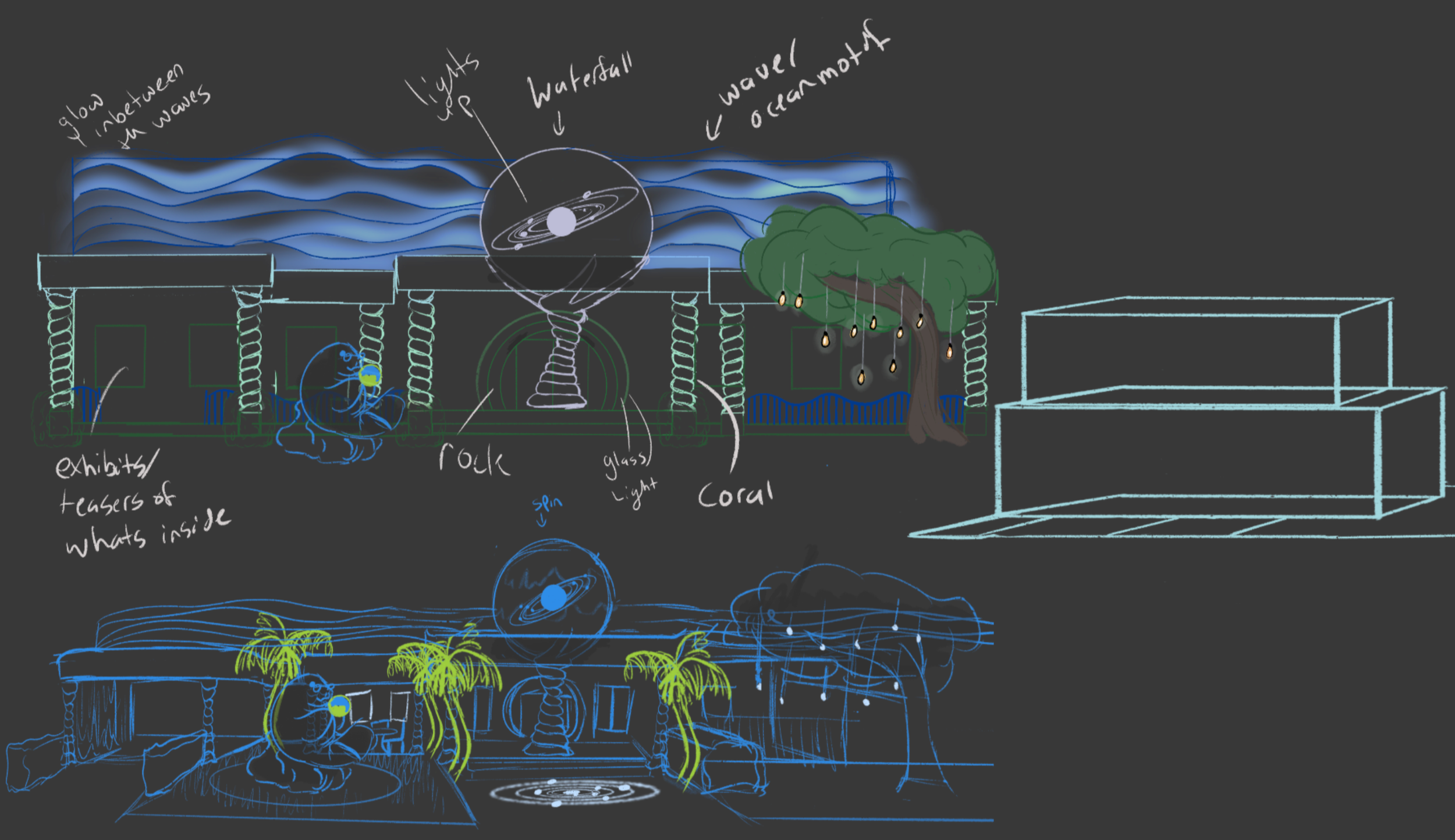Elements such as natural materials, earthy tones and greenery native to Florida. The storefront design for the Bishop Museum of Science and Nature serves as a beacon of discovery, inspiring curiosity and wonder to visitors of all ages.
